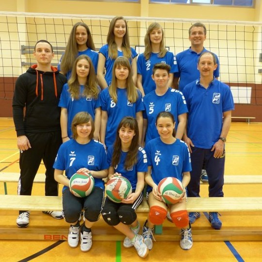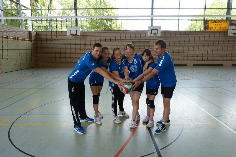 Von Links: Trainer Otto Hildebrand, Sahra Kühne, Lilian Giebler, Kapitän Anika Weinhold, Julia Müller, Trainer Jörg Siebert