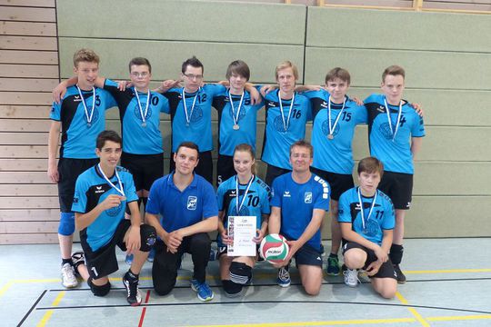Vorn: Tom Siebert, Trainer Otto Hildebrand, Kapitän Sophia Franke, Trainer Jörg Siebert, Jonah Eichler